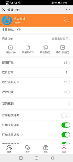 手机端随时随地接收消息通知、查看店铺动态、操作处理订单等