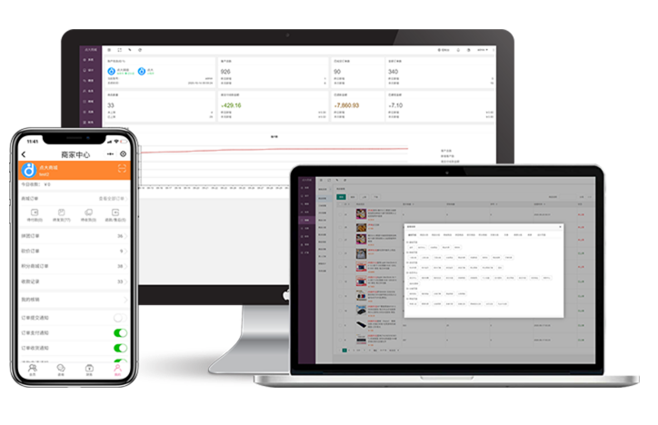 商家可申请入驻、商家有独立的PC端后台及手机端管理助手,